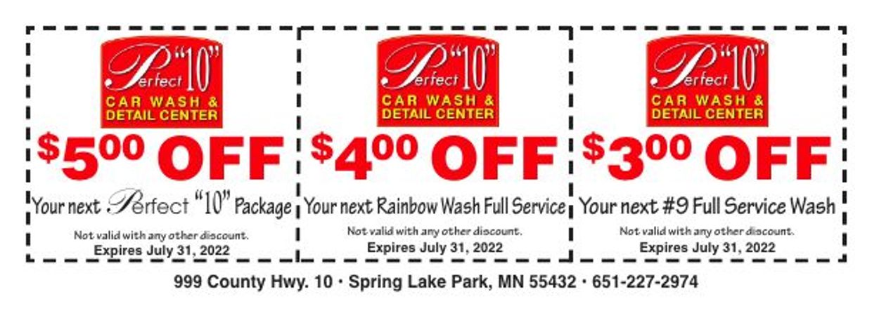 Perfect 10 Car Wash Coupons - Free Coupon Codes. We are the Highest Volume Full Service Car Wash in MN.